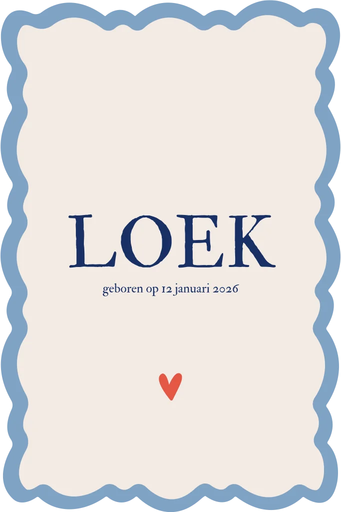 Hoe speciaal is dit geboortekaartje?! De golvende rand is net even aders en zorgt ervoor dat je kaartje net even wat unieker is. De rest van het kaartje is mooi strak en maakt het een rustig maar toch bijzonder geheel.