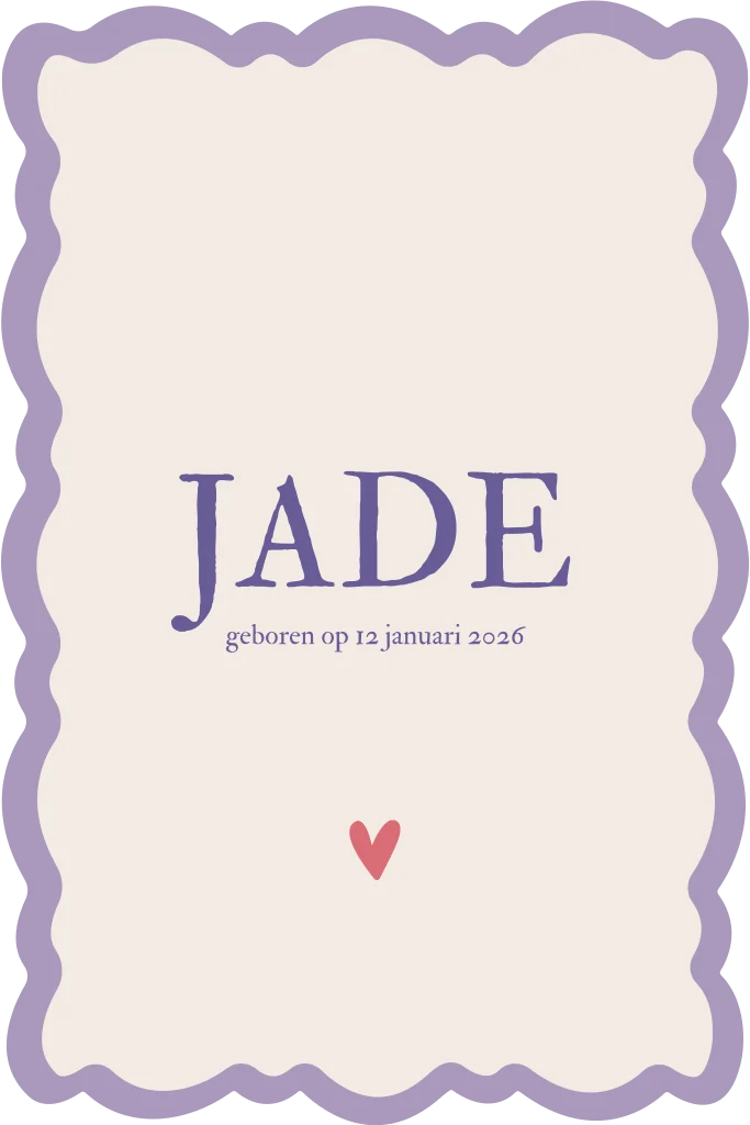 Hoe speciaal is dit geboortekaartje?! De golvende rand is net even aders en zorgt ervoor dat je kaartje net even wat unieker is. De rest van het kaartje is mooi strak en maakt het een rustig maar toch bijzonder geheel. // Jade