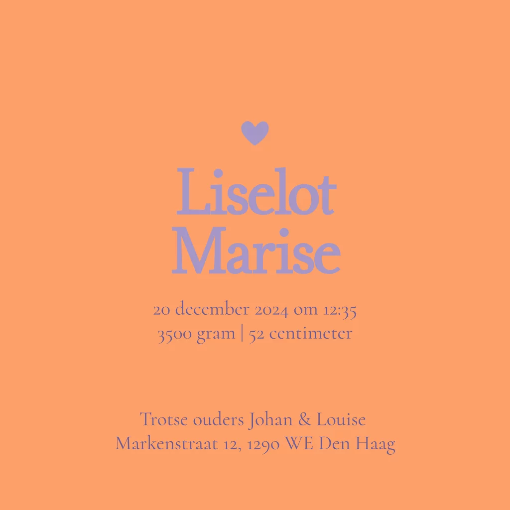 geboortekaartje gestanste hartjes paars roze
