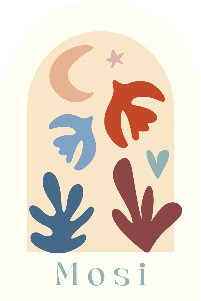 Uniek geboortekaartje in een halve boog vorm. Op de voorzijde vind je verschillende organische vormen wat het geheel heel bijzonder en uniek maakt.