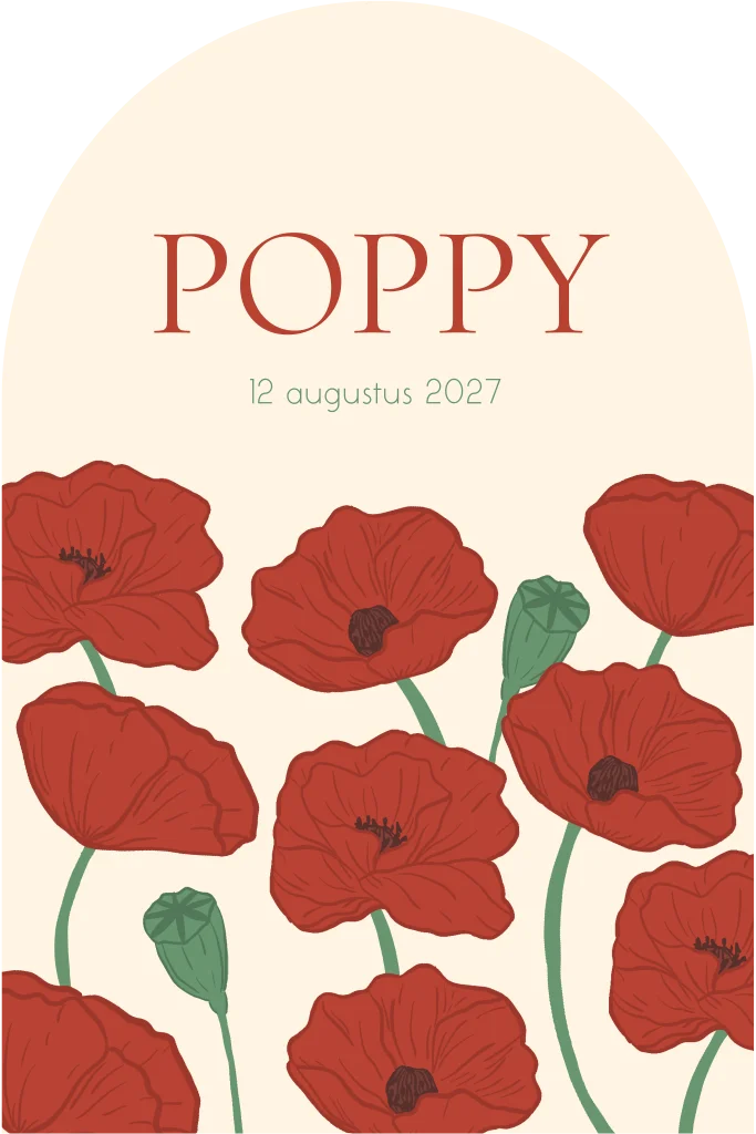 Een mooi uniek geboortekaartje voor een baby geboren in augustus of als je enorm houdt van klaprozen.