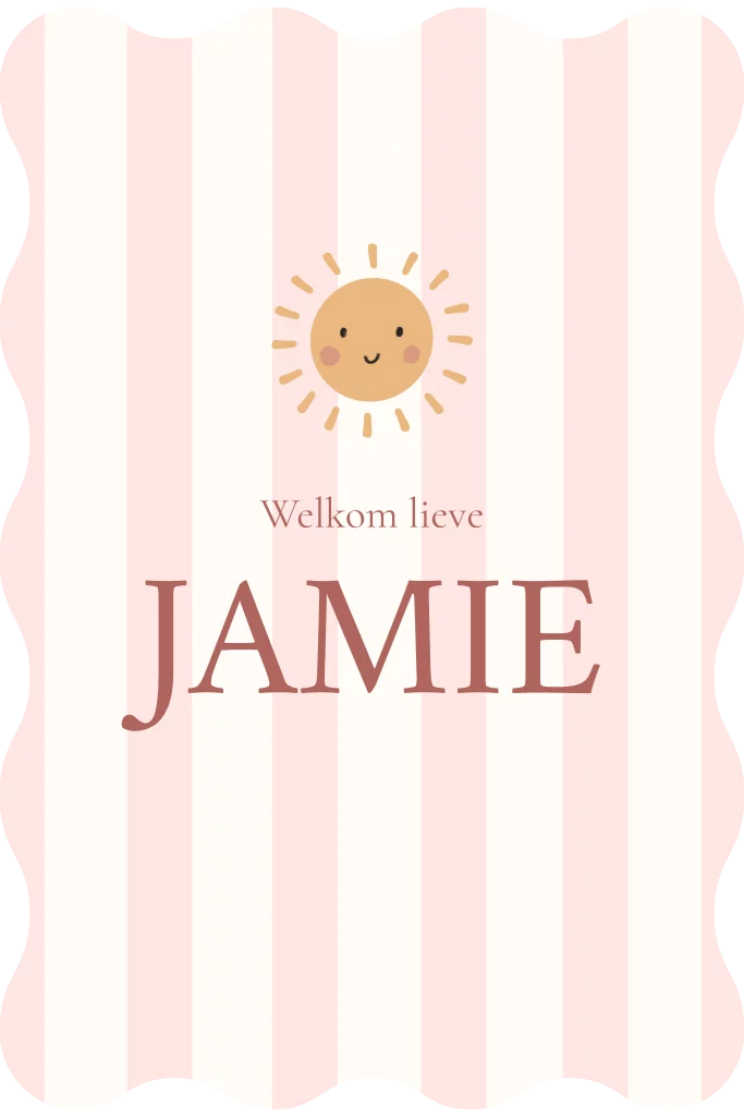 Geboortekaartje met streepjes en een zonnetje. Een eenvoudig maar stijlvol ontwerp en het zonnetje is een schattige toevoeging.
