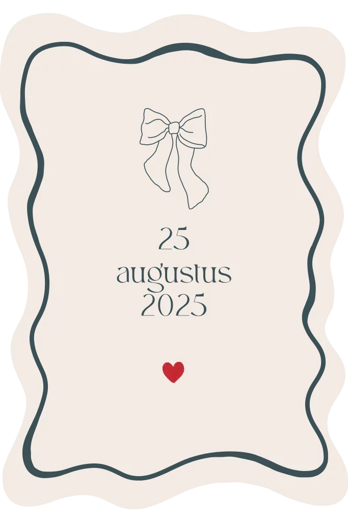 Prachtige minimalistische kaart in beige kleur met groene kringelvorm. Dit maakt het geheel extra speciaal. Vraag je getuigen of ceremoniemeester met deze unieke kaart.