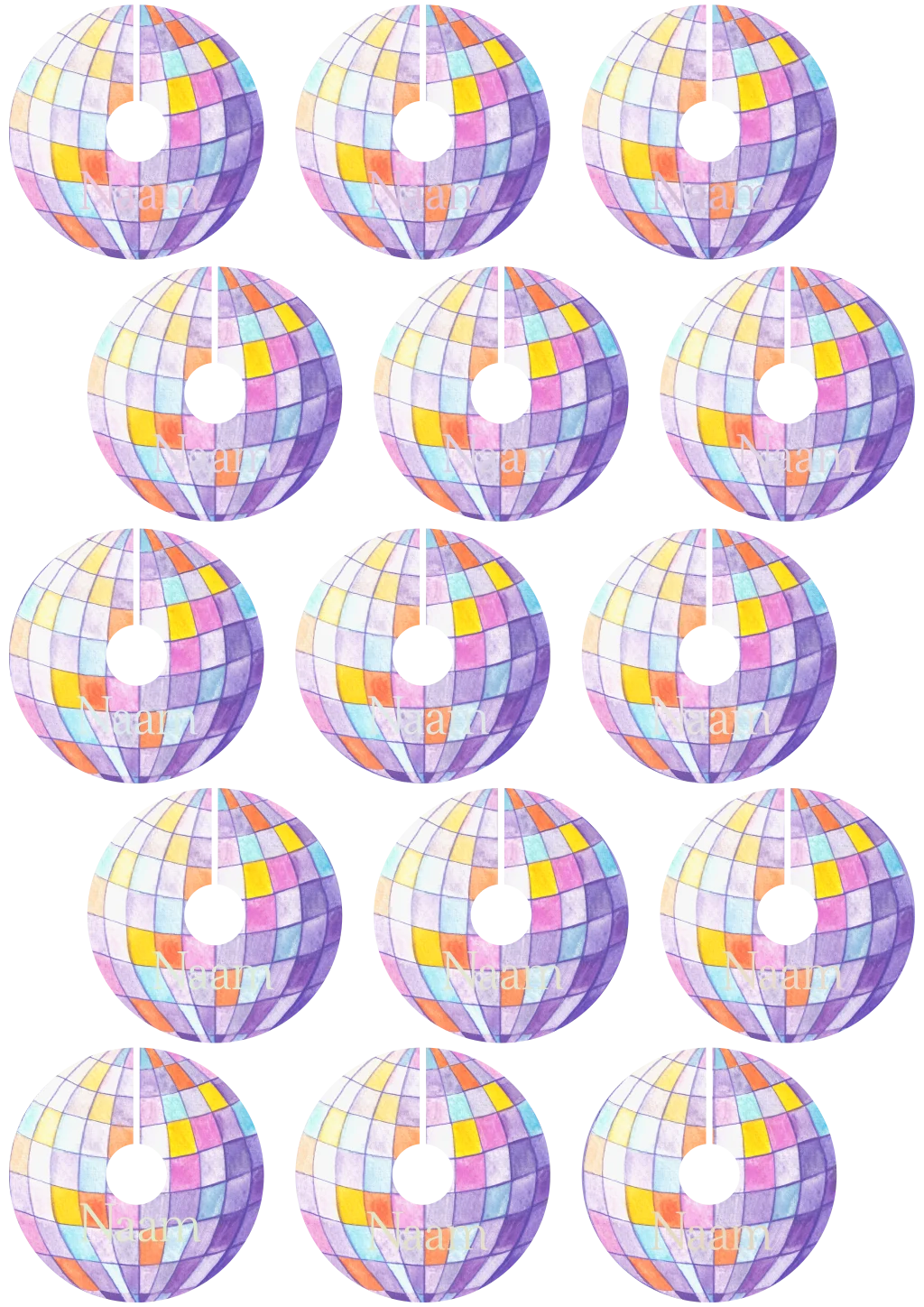 Glaslabels in de vorm van een discobal waar je de naam van de gast op kan schrijven. De kleurrijke discobal zorgt voor een leuke vrolijke sfeer aan tafel.