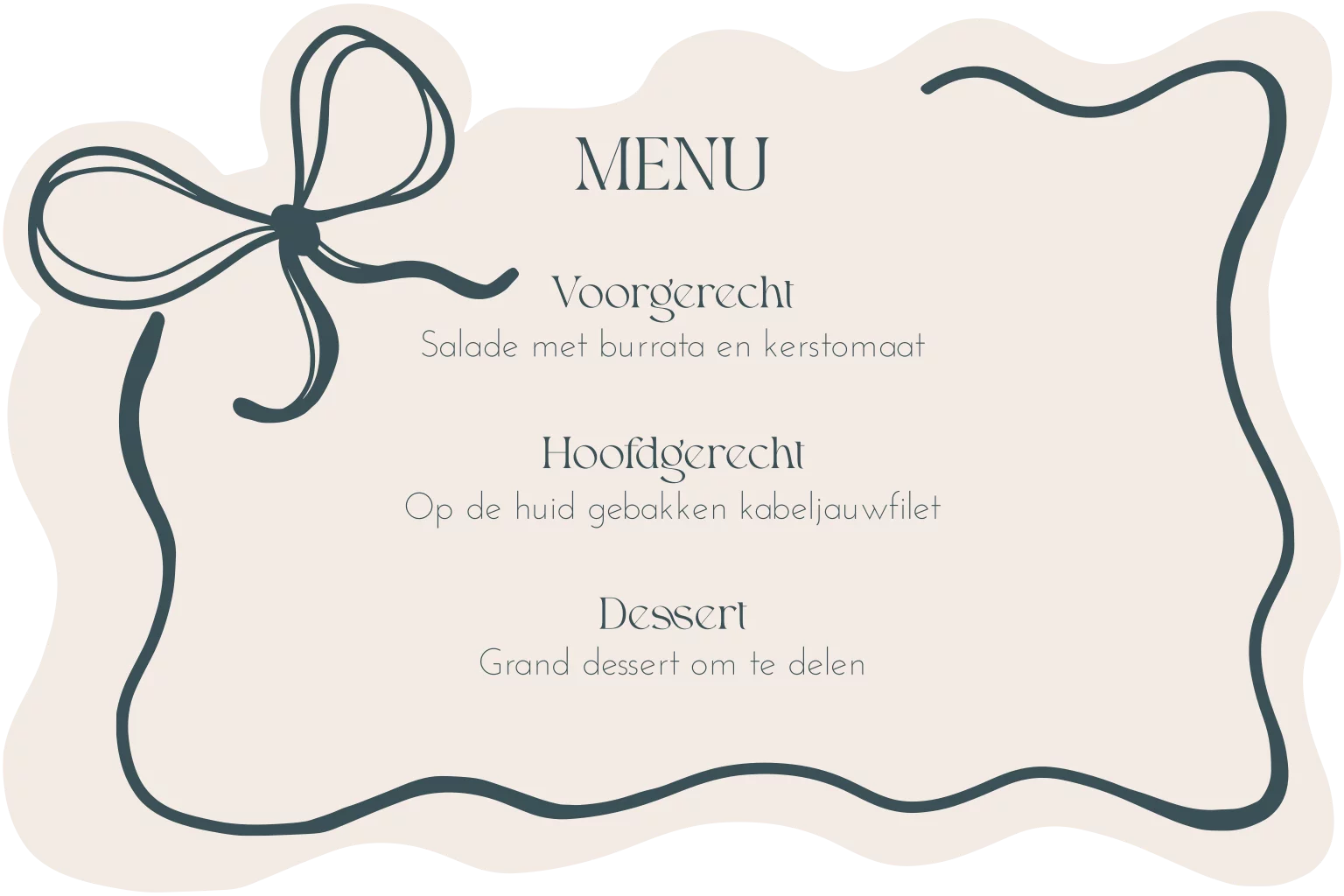 Prachtige minimalistische klassieke menukaart in een mooie golvende vorm met een strik.