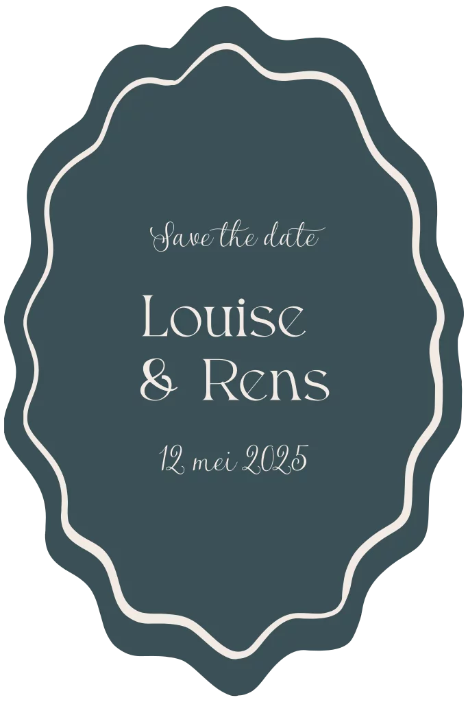 Prachtige unieke trouwkaart in een kringel-ovale vorm. Het kaartje is klassiek en toch modern.