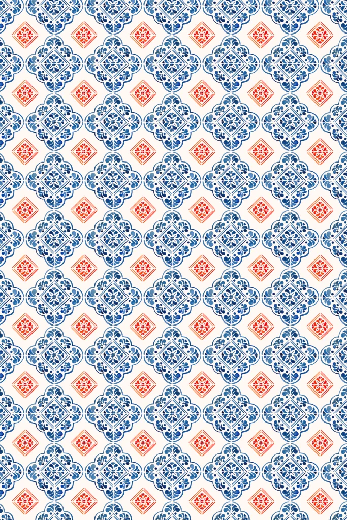 De halve boog is uitgestanst op de voorpagina, waardoor je print van Spaanse tegels direct kunt zien. De tegels zijn door ons geschilderd.