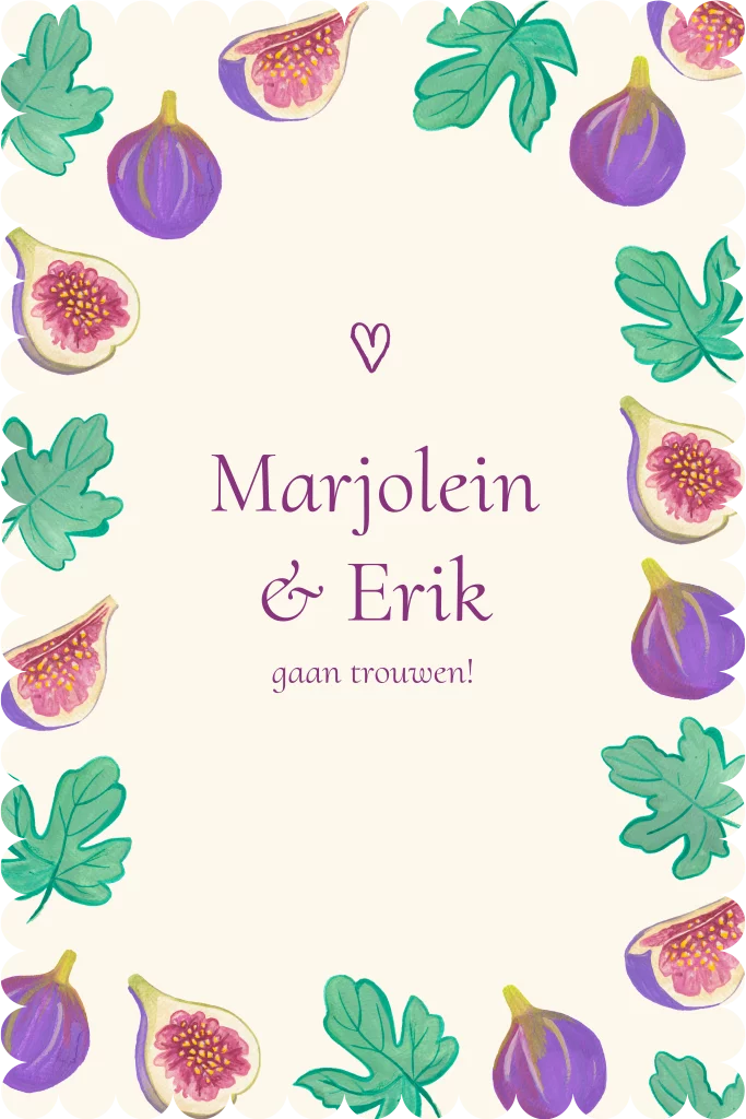 Mooie trouwkaart met vijgenprint. De trend van nu!