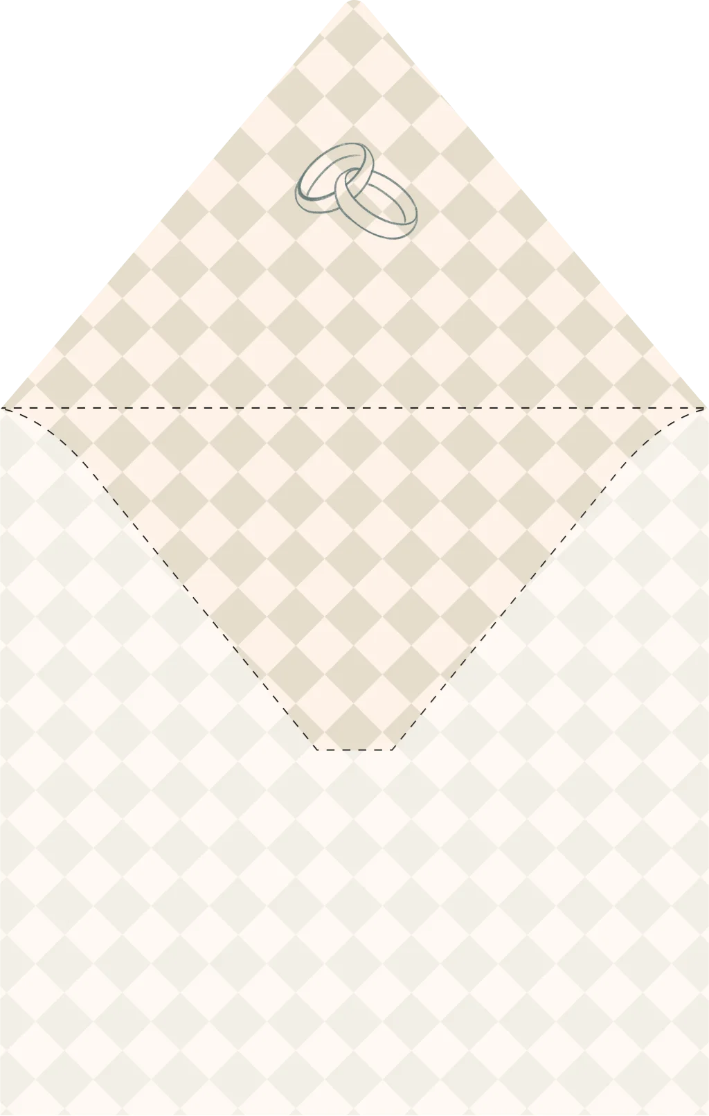 Mooie unieke envelop inlay met ruitjes en getekende trouwringen.Deze inlay is voor een vierkante envelop en past perfect bij de save the date van de trouwlijn Lynn & Nick
