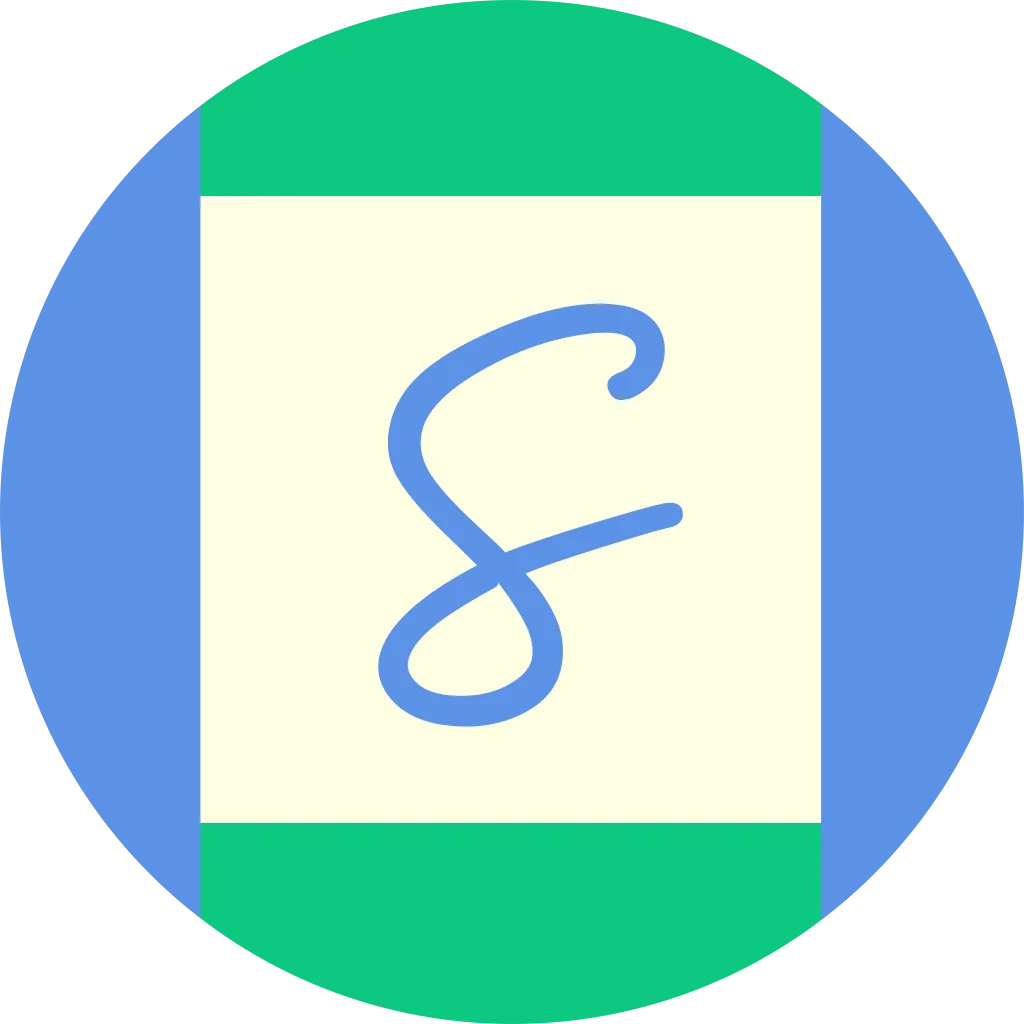 Vrolijke sluitzegel in blauw en groen, passend bij het kaartje Stijn. // Stijn