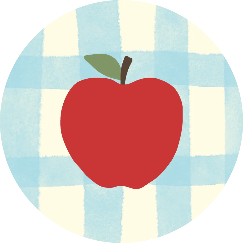 Mooie sluitzegel met een ruitjespatroon in blauw en een appel, passend bij het kaartje Pelle. // Pelle