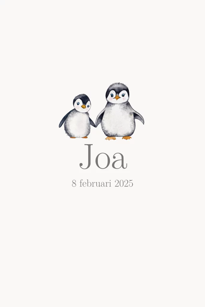 Dit genderneutrale geboortekaartje is erg geschikt om een broertje of zusje aan te kondingen. Heb je een groter gezin? Dan kun je eenvoudig extra pinguins toevoegen.