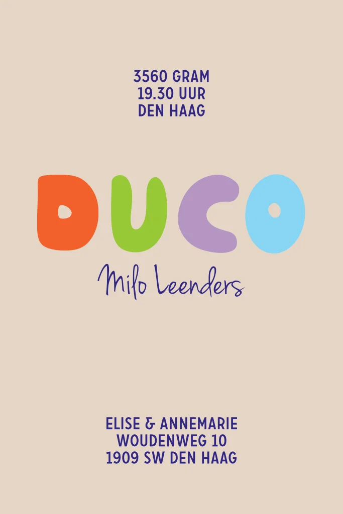 Stoer en vrolijk geboortekaartje. Precies iets voor de geboorte van jouw zoon of dochter!