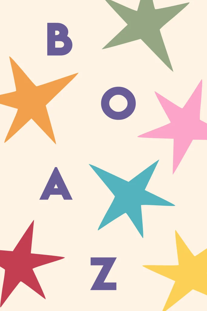Geboortekaartje met grote sterren in verschillende kleuren. De naam danst over het kaartje!