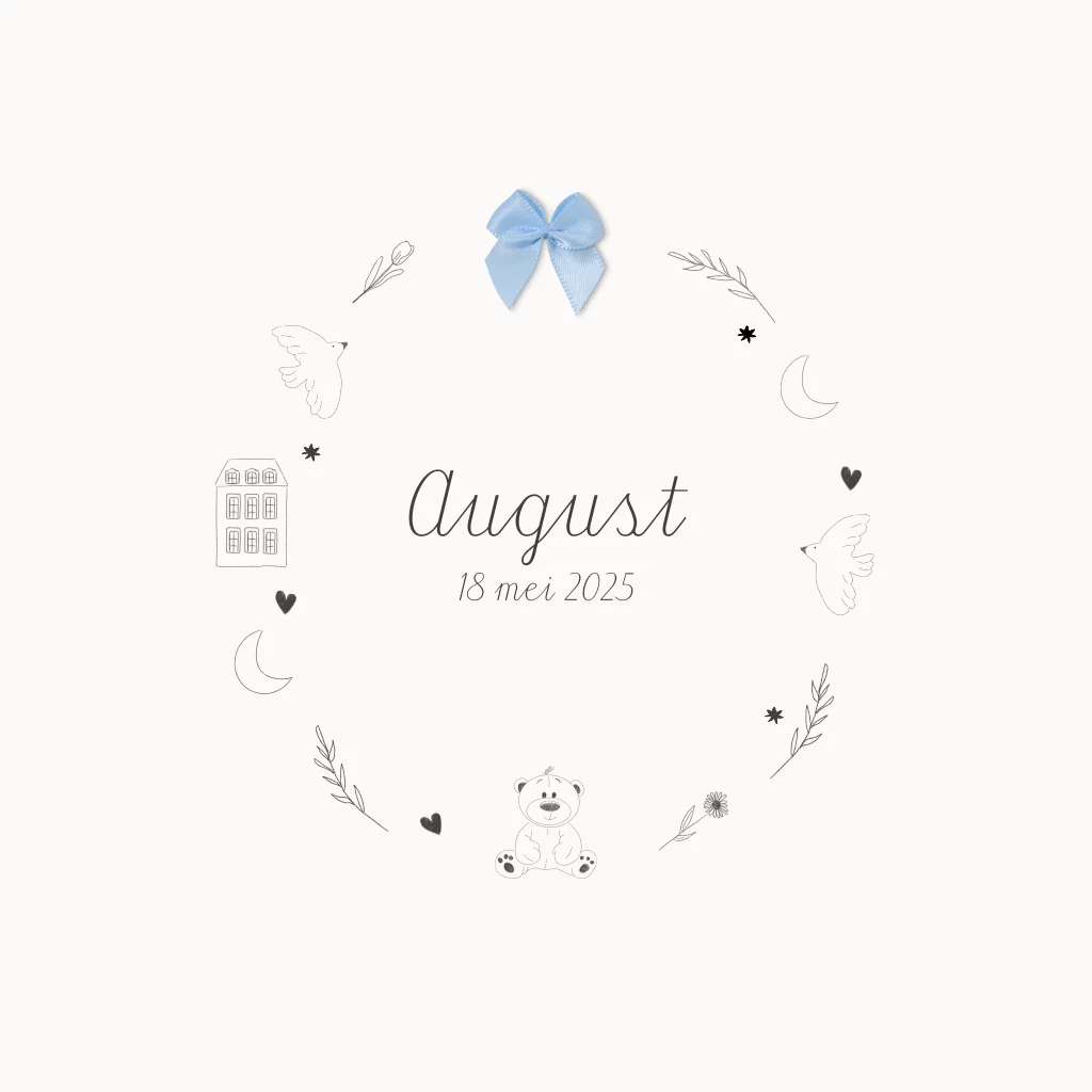 Geboortekaartje Getekende elementjes in cirkel met strikje