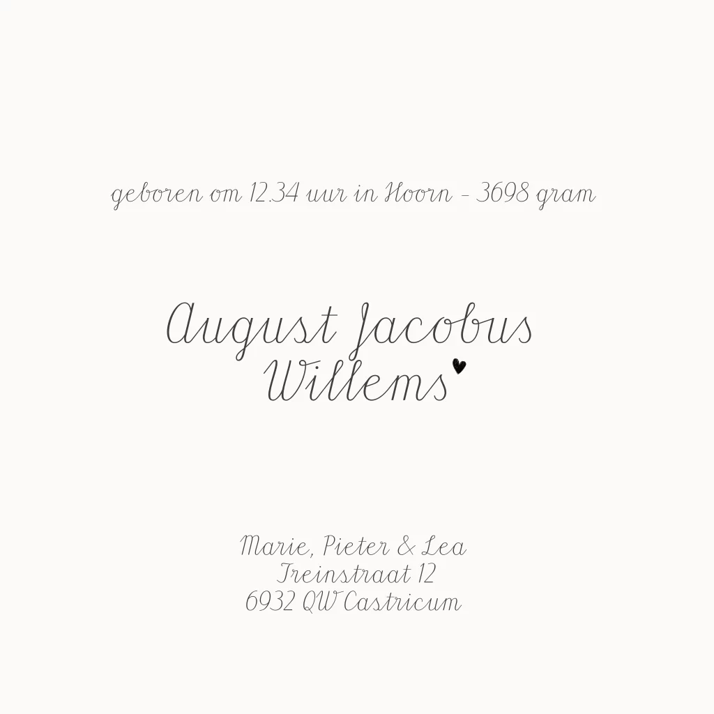 Simpel en lief geboortekaartje met echt strikje en getekende elementjes. Zo is het klassiek maar toch ook uniek.