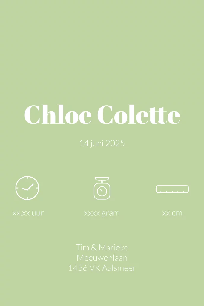 De naam springt eruit in mooi goudfolie. Pas de kleuren en lettertypes eenvoudig aan in de editor!