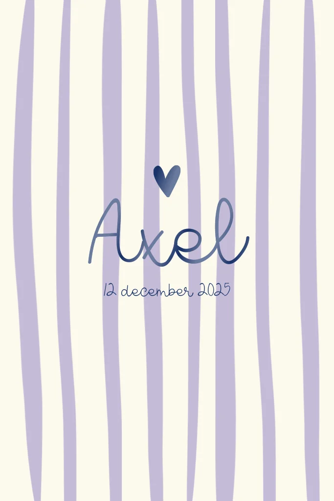 Dit stoere geboortekaartje met paarse streepjes en hoogglans afwerking is perfect voor de aankondiging van de geboorte van jullie zoon.