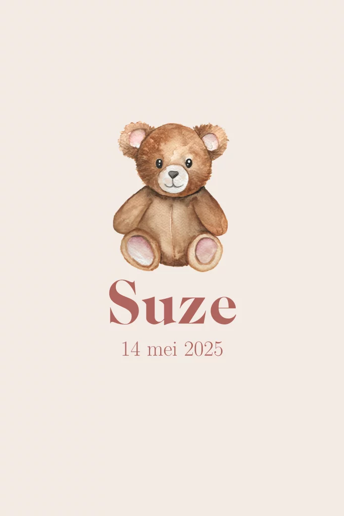 Dit genderneutrale kaartje heeft een mooie beige kleur en een illustratie van een teddybeer, die door ons is geschilderd in aquarel.