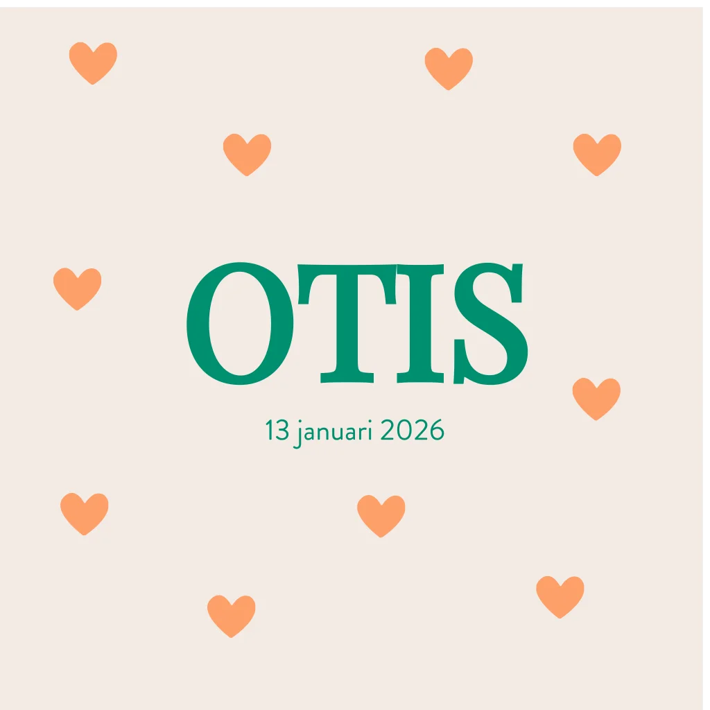 Een uniek raambord met beige achtergrond en oranje hartjes. Het is minimalistisch maar toch een erg vrolijke aankondiging van de geboorte van jouw kindje.