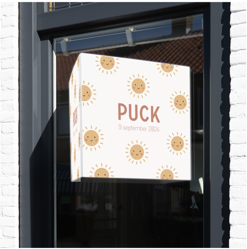 - Voorkant van geboortekaartje kan als raambord worden omgezet