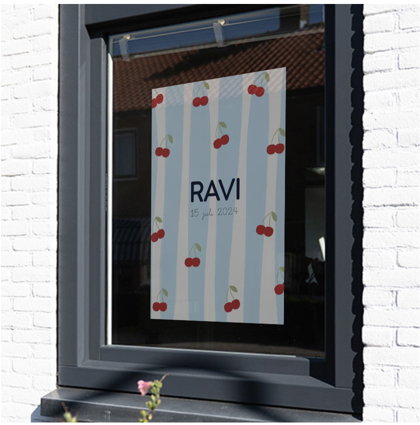 - Voorkant van geboortekaartje kan als raamsticker worden omgezet