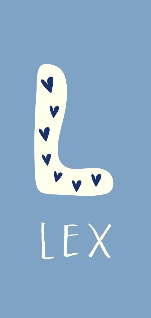 Geboortekaartje met de letter L. Vrolijk en toch eenvoudig kaartje.