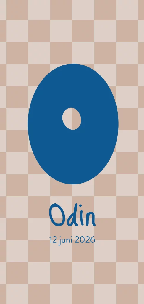 Een schattig geboortekaartje met vrolijke print van checkerboard en de letter O. De letters is in elke gewenste kleur aan te passen.