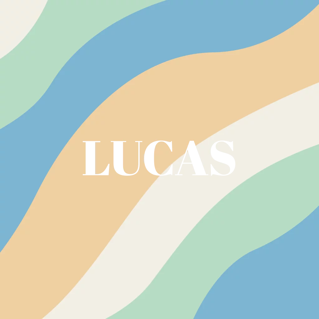 Hip geboortekaartje met golven in geel, beige, groen en blauw.