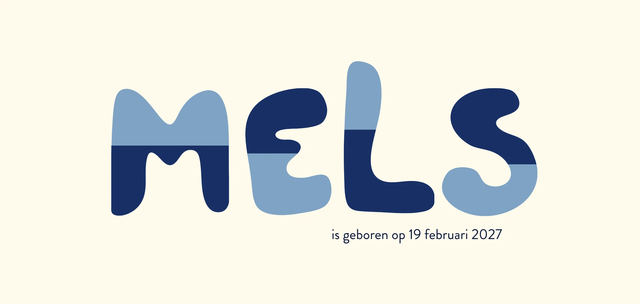 Een stoer geboortekaartje met de naam in 2 kleuren.