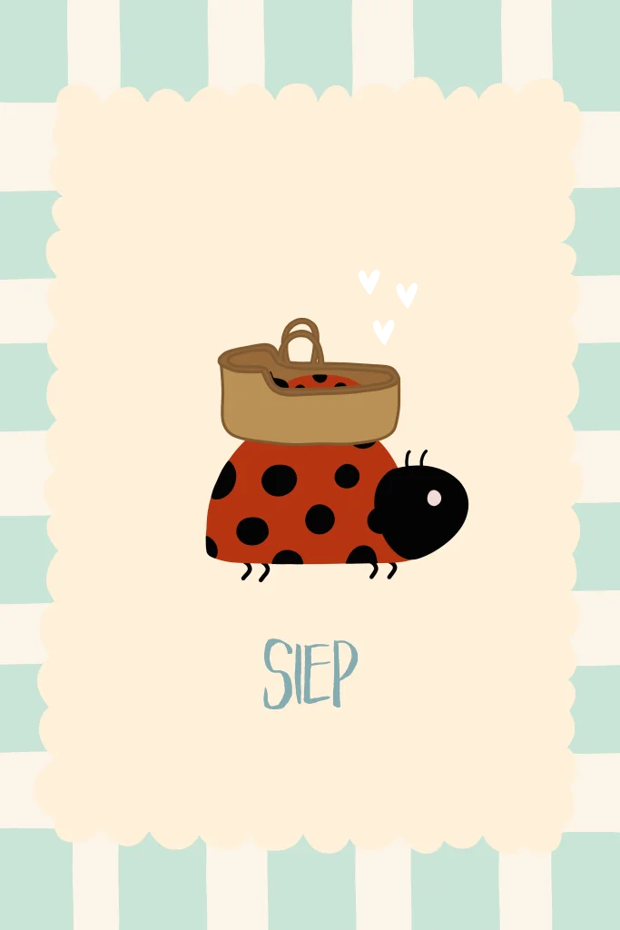 Een lief geboorte met op de voorkant een lieveheerstbeestje die zijn broertje op zijn rug draagt in de wieg. Leuk symbolisch voor als je een tweede kindje verwelkomt.