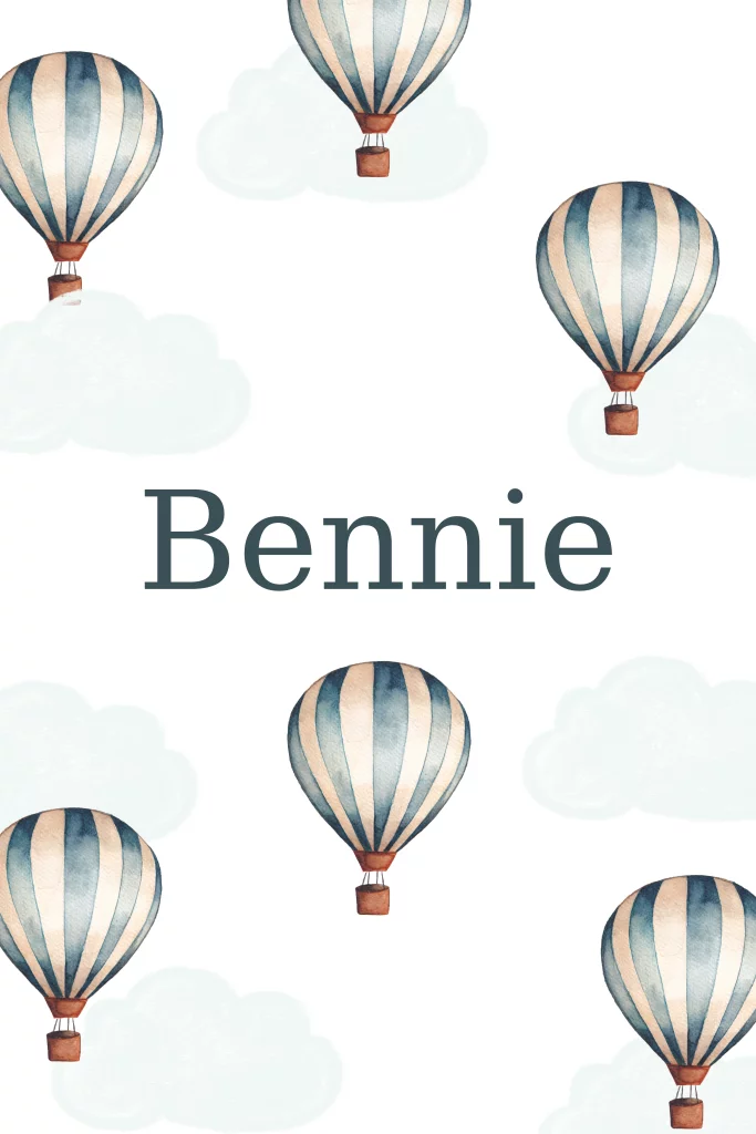Een prachtig geboortekaartje voor een jongen met een print van luchtballonnen en wolken.
