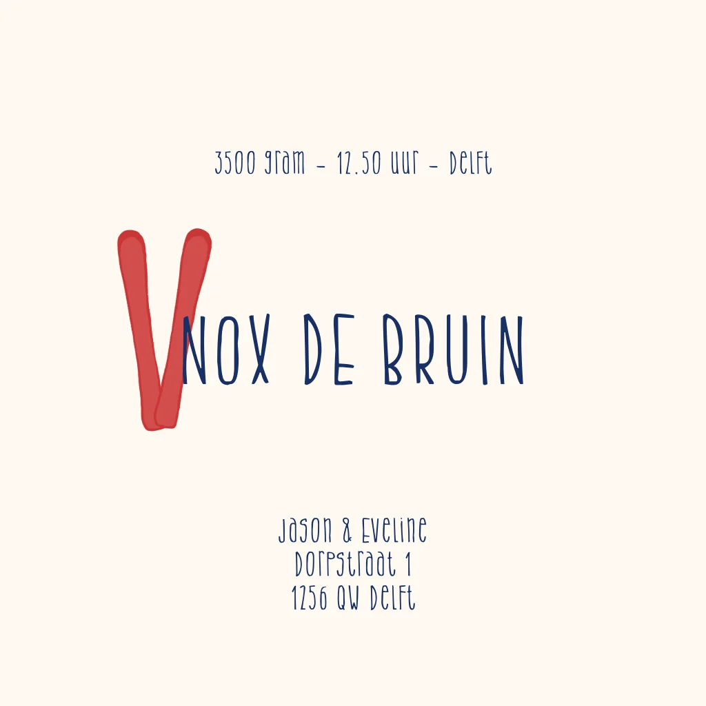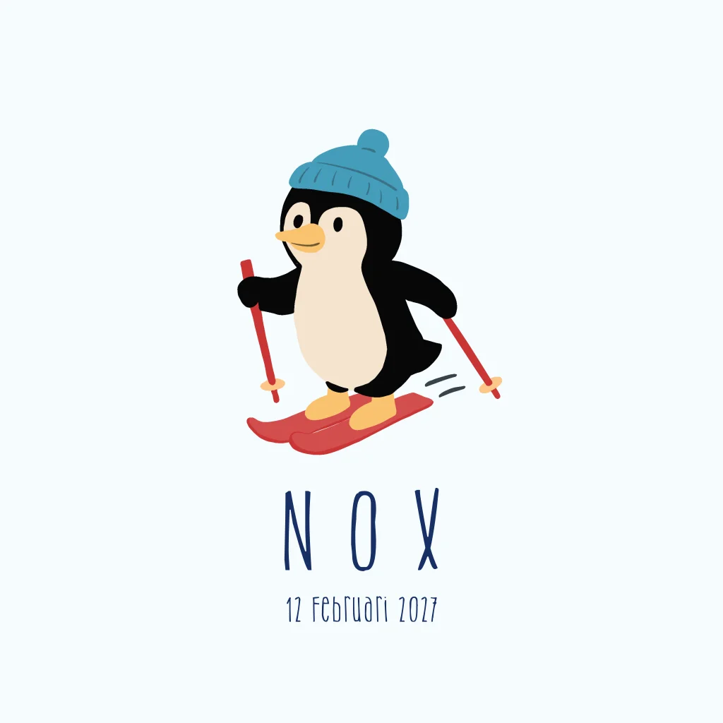 Een stoer geboortekaartje met een pinguïn op ski's.