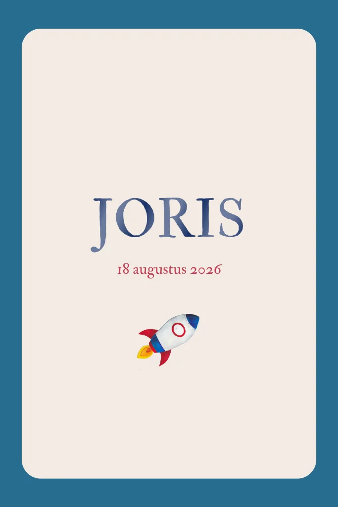 Het kaartje is eenvoudig maar door de raket heeft het toch net dat beetje extra. De raket is met de hand geschilderd in aquarel