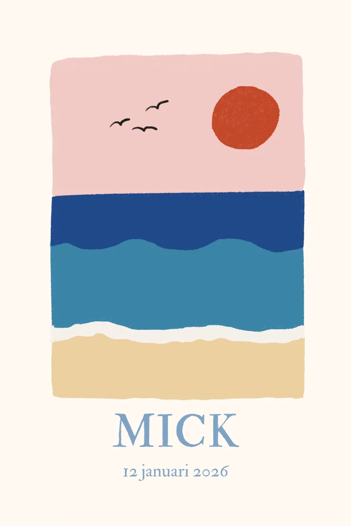 Ben je dol op het strand? Dan is dit mooie geboortekaartje iets voor jou! // Mick
