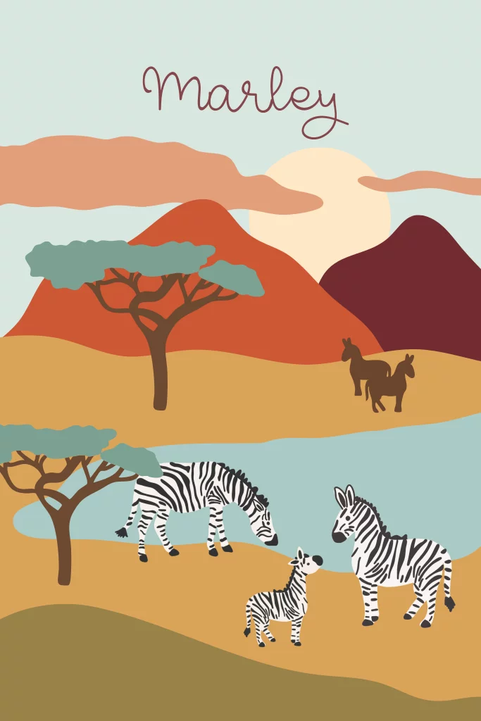 Prachtig uniek geboortekaartje met een mooie natuurprint. Het kaartje heeft kleuren uit de natuur, wat een mooi aardse look geeft. De zebra's staan voor het gezin en het nieuwe mooie leven wat er is gekomen.