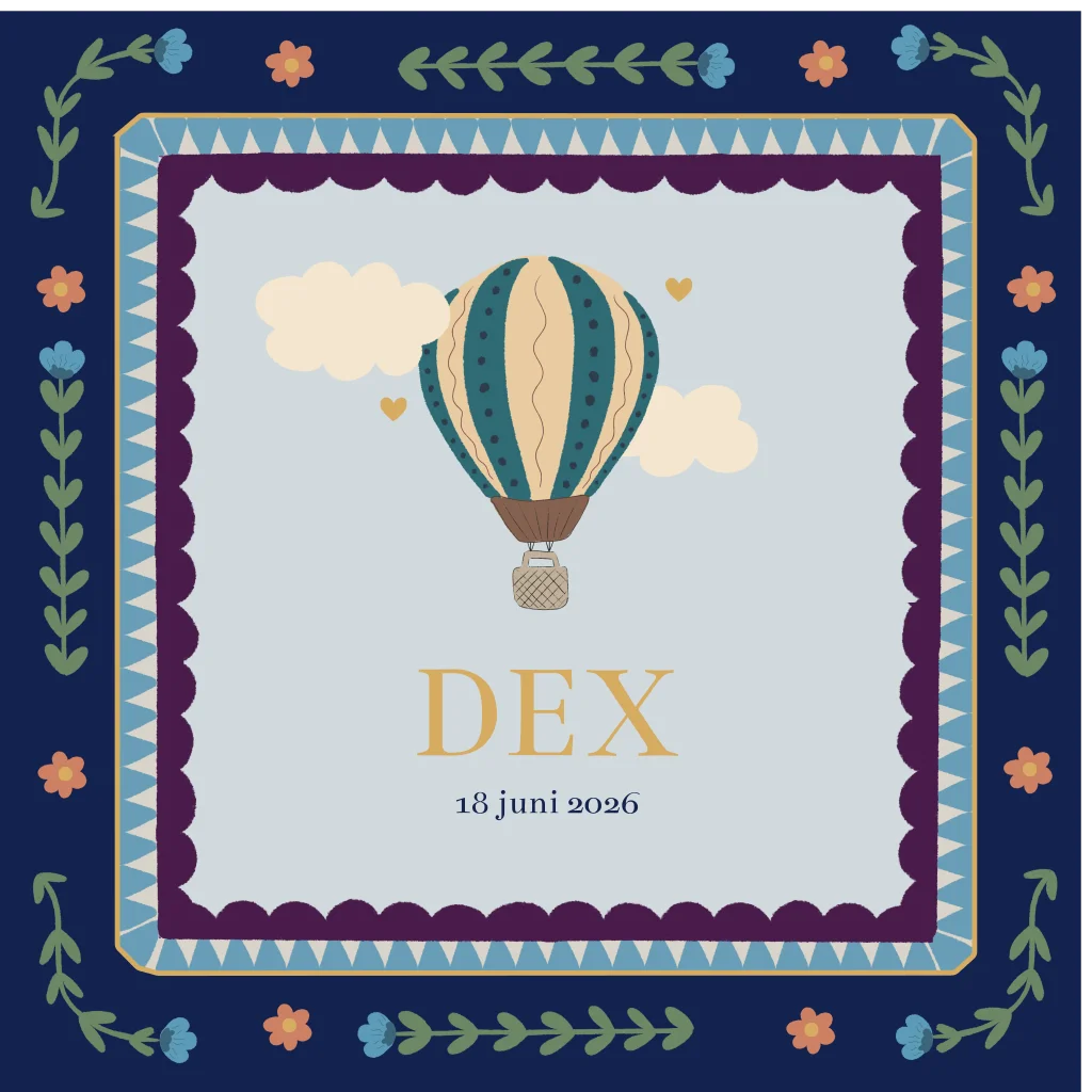 - Voorkant van geboortekaartje kan als raambord worden omgezet