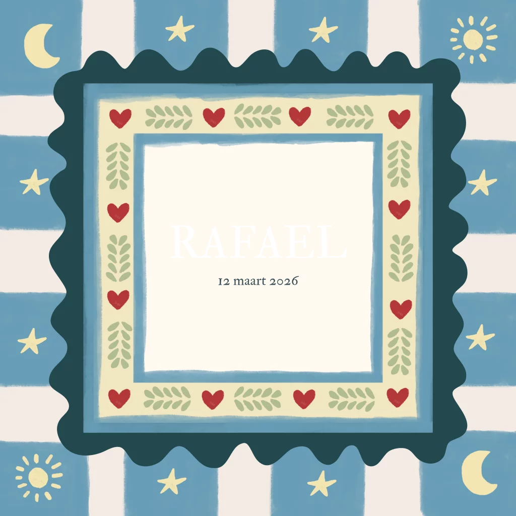 Een super vrolijk én uniek geboortekaartje is dit! Het kaartje heeft veel verschillende kleurtjes en elementen waardoor het geboortekaartje van jouw kleine een mini schilderijtje lijkt.