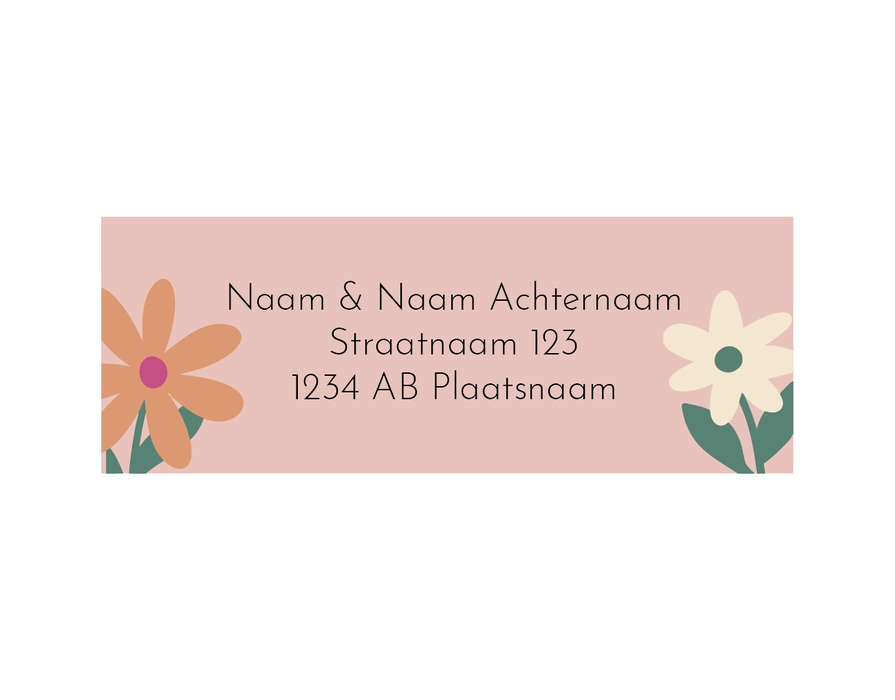 Schattige adresstickers met bloemetjes en een roze achtergrond. Perfect passend bij jullie geboortekaartje.