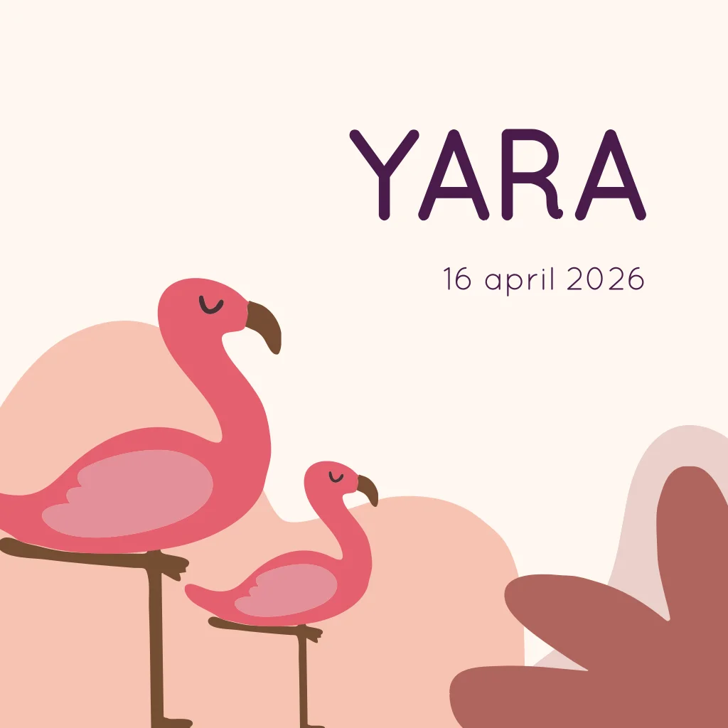 Een mooi geboortekaartje voor een meisje met twee flamingo’s in een roze setting. Dit geboortekaartje is ontworpen voor twee zusjes en laat zien dat er een tweede meisje is geboren.