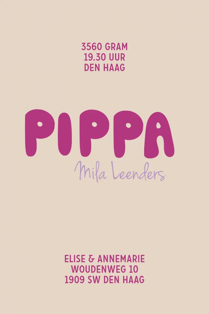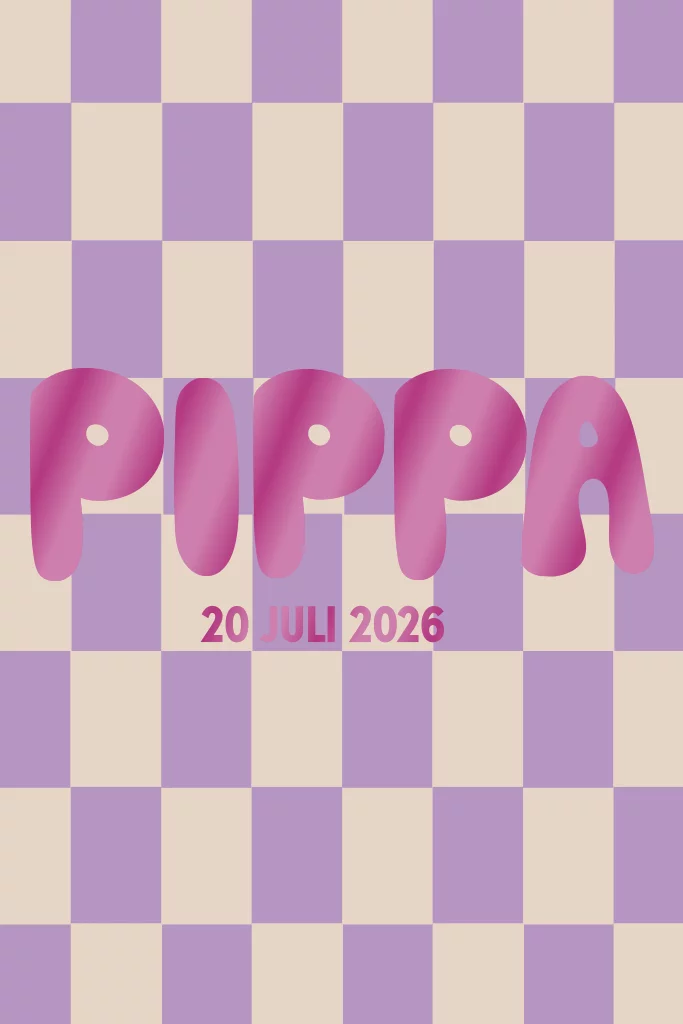 Geboortekaartje geblokt paars stoere letters