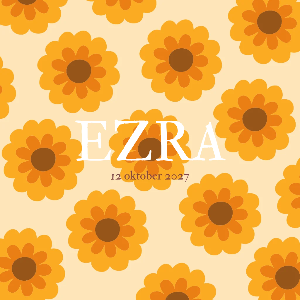 Geboortekaartje met de geboortebloem van oktober: De goudsbloem. Het kaartje heeft een retro vibe.
