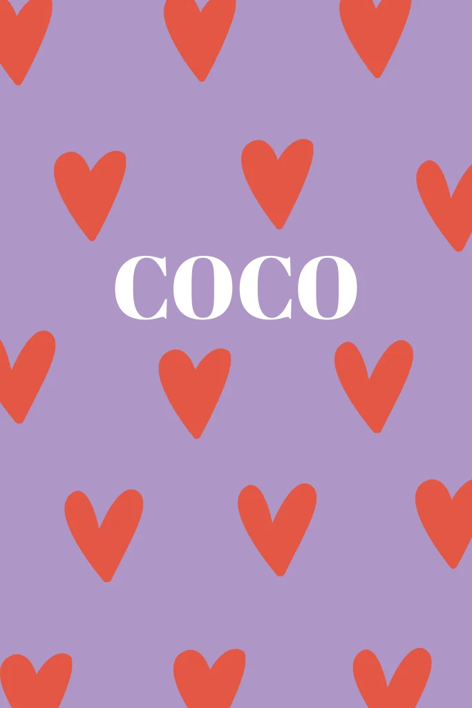 Kleurrijk vrolijk geboortekaartje met hartjesprint in rood & paars