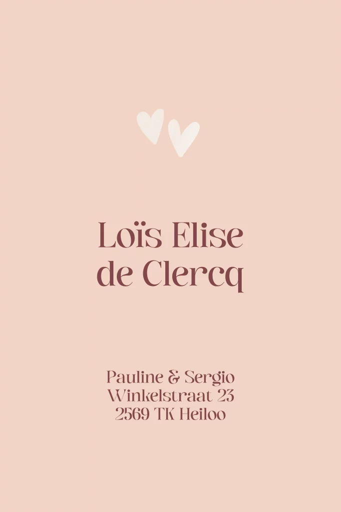 Lief geboortekaartje met een hartjesprint in neutrale kleuren.