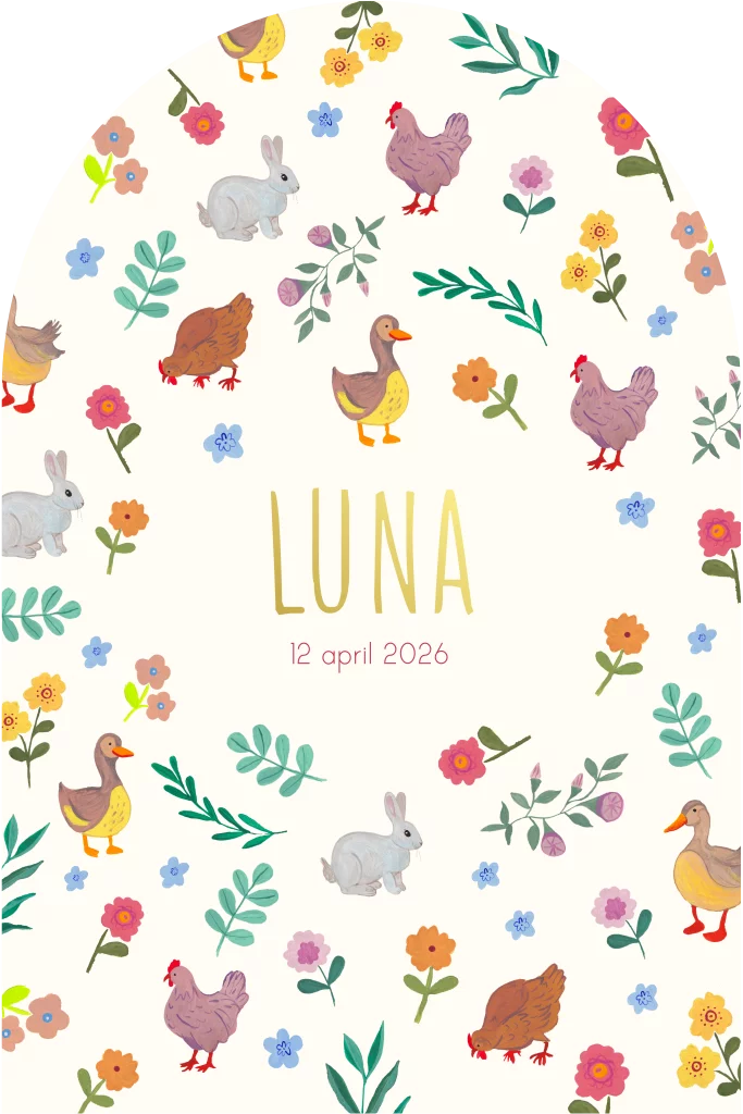 Krijg je een kindje in de lente? Dan is dit schattige patroon iets voor jou! Op het kaartje vind je eendjes, kippetjes, een konijn en veel verschillende bloemen. Erg leuk en vrolijk!