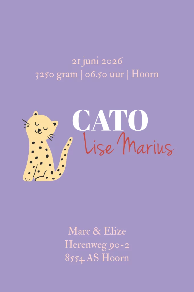 Geboortekaartje luipaard patroon meisje