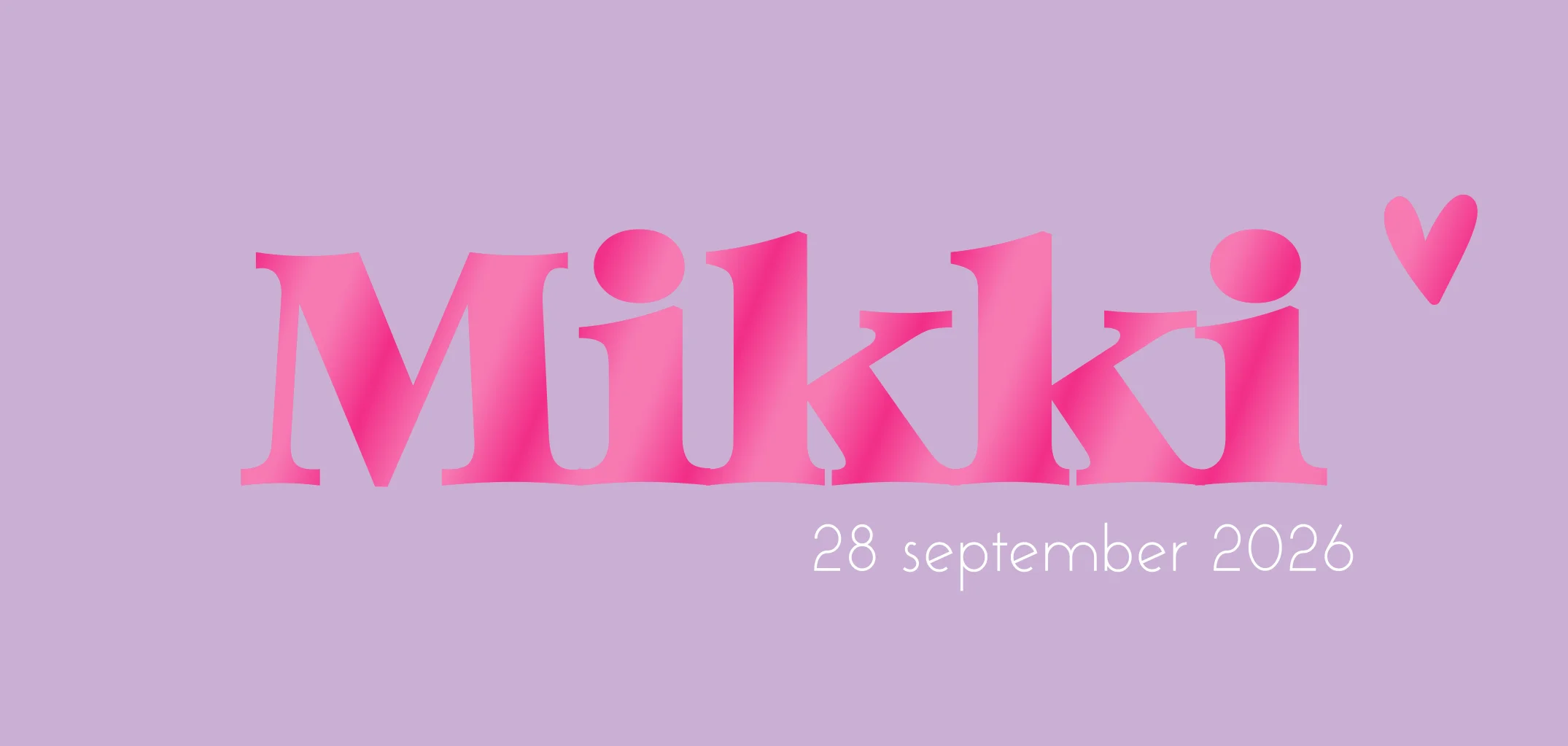 De naam van jouw dochter springt eruit in knalroze hoogglans. Pas de tekst of de kleuren aan in de editor.