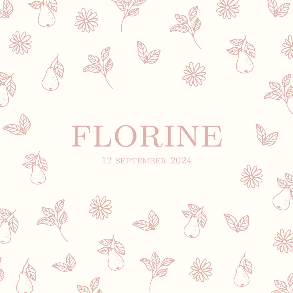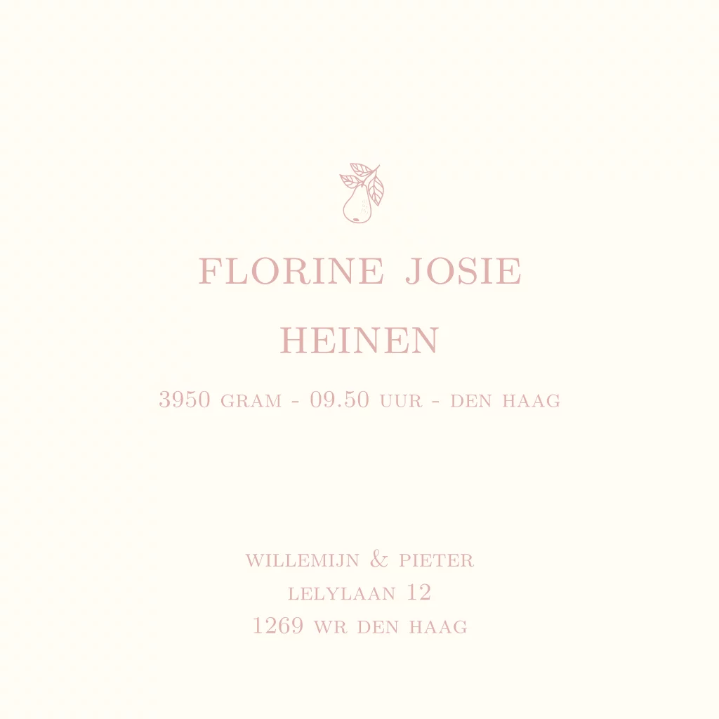 Geboortekaartje Peertjes patroon roze dubbel vierkant