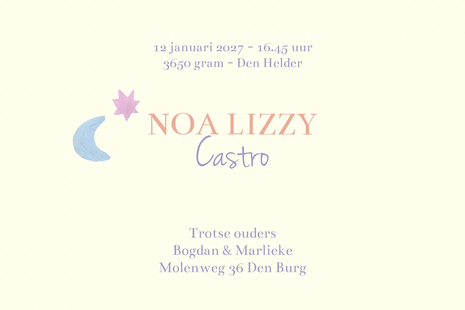 Een zacht geboortekaartje voor met bolletjes randje en letters