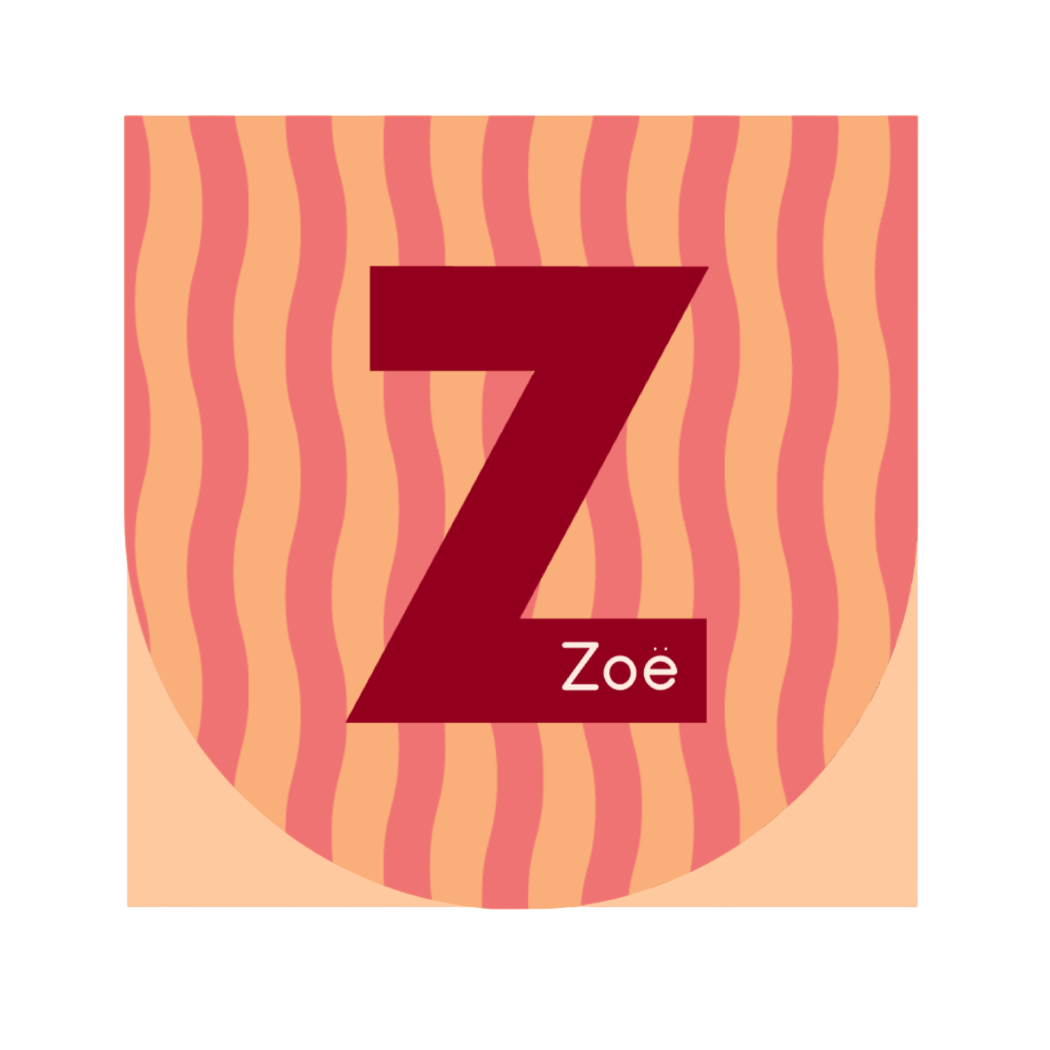 Het geboortekaartje is uitgevoerd in fris oranje en roze. Op de voorkant staat een grote letter in bordeauxrood die direct opvalt.